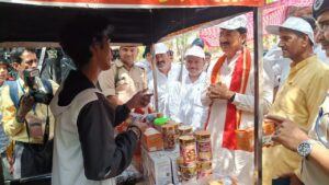 इसके बाद कलेक्टर ने गौ-उत्पादों की स्टॉल का निरीक्षण किया और उत्पादों के निर्माण और विक्रय की प्रक्रिया की जानकारी ली। वहीं पास ही एक स्थानीय समान बेचने वाले फेरीविक्रेता से चर्चा की और उसके कुछ उत्पाद खरीदकर मंदिर में मौजूद बच्चों को उपहार स्वरूप भेंट किए।