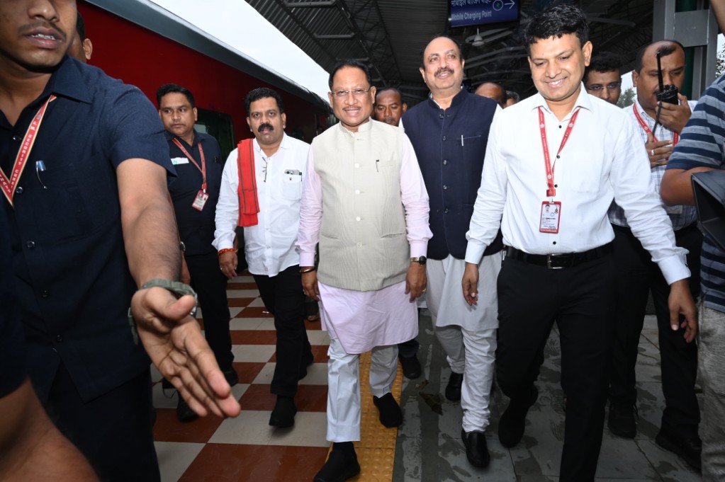 मुख्यमंत्री विष्णु देव साय ट्रेन से पहुंचे अंबिकापुर, जनप्रतिनिधियों ने किया आत्मीय स्वागत