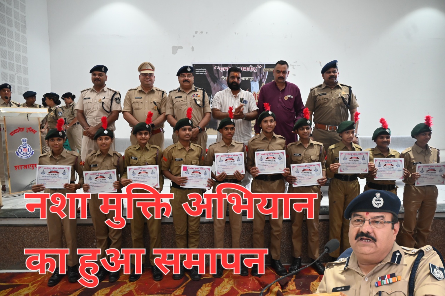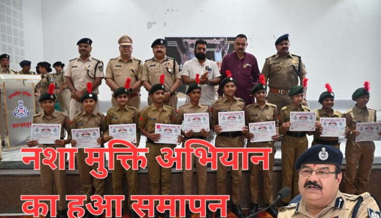 पुलिस मुख्यालय भोपाल के निर्देशानुसार 15 जुलाई 2025 से 30 जुलाई 2025 तक जिला शाजापुर में संचालित “नशे से दूरी, है जरूरी” विशेष जन-जागरूकता अभियान के अंतर्गत दिनांक 30 जुलाई 2025 को गांधी भवन जिला शाजापुर में समापन कार्यक्रम का आयोजन किया गया।