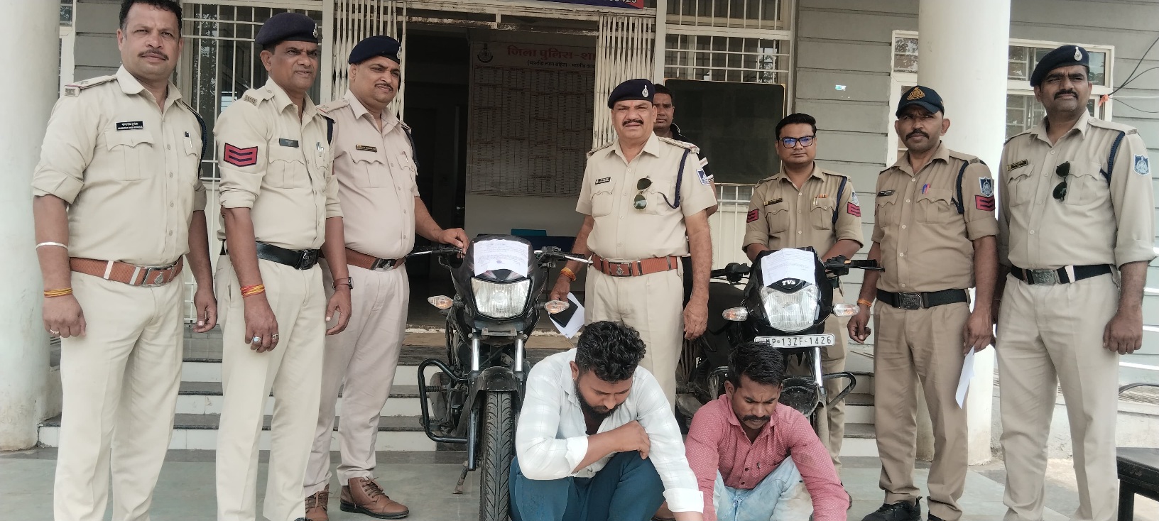 थाना मक्सी जिला शाजापुर पुलिस को मिली बड़ी सफलता,मिली है,पुलिस ने दो मोटर सायकल एवं एक मोबाईल चोर को गिरफ्तार किया, टीआइ भीम सिंह पटेल ने बताया कि श्रीमान पुलिस अधीक्षक यशपाल सिंह राजपुत, श्रीमान अतिरिक्त पुलिस अधीक्षक महोदय घनश्याम मालवीय तथा श्रीमान एस.डी.औ.पी. महोदय गोपाल सिंह चौहान के द्वारा कस्बा मक्सी मे अपराध एवं अपराधियो पर सतत निगरानी रखने एवं अंकुश लगाने हेतु निर्देशित किया गया था। जिनके मार्गदर्शन मे थाना मक्सी जिला शाजापुर पर पंजीबद्ध अपराध क्र0 194/2025 धारा 303 (2) BNS में चोरी गई एक हौंडा साइन मोटर सायकल कीमती 25000 हजार रुपये अपराध क्रमांक 251/25 धारा 303 (2) BNS में चोरी गया OPPO कम्पनी का मोबाईल कीमती 18500 रुपये एवं अपराध क्रमांक 226/2025 धारा 303 (2) BNS में चोरी गई मोटर सायकल टी.वी.एस. स्पोर्ट काले रंग की जिसका रजिस्ट्रेशन नं MP-13-ZF-1426 कीमती 35000 रुपये उपरोक्त तीनो अपराधो की तलाश एवं अज्ञात आरोपीगण की पतारसी हेतु मुझ थाना प्रभारी निरी) भीम सिंह पटेल द्वारा टीम गठित कर अपराध में दिनांक 03/8/2025 मुखबिर की सूचना पर आरोपी शेरू सोलंकी पिता साहेब सोलंकी जाति भुसाई (बसोर) उम्न 28 साल मजदूरी नि. अहरखेडी कांकड़ नई बस्ती थाना द्वारकापुरी इंदौर से चोरी गई एक हौंडा साइन मोटर सायकल कीमती 25000 हजार रुपये एवं चोरी गया OPPO कम्पनी का मोबाईल कीमती 18500 रुपये का जप्त किया गया एवं आरोपी राहुल चंदेल पिता गंगाराम चंदेल उम्र 28 वर्ष निवासी ग्राम पलद‌ना से चोरी गई मोटर सायकल टी.वी.एस.स्पोर्ट काले रंग की जिसका रजिस्ट्रेशन नं MP-13-ZF-1426 है कीमती 35000 रुपये की एवं से जप्त की गई। इस प्रकार दोनों आरोपीगण 1. शेरू पिता साहेब सोलंकी 2. राहुल पिता गंगाराम चंदेल से कूल कीमती 78500 रुपये का मशरुका जप्त किया गया ।