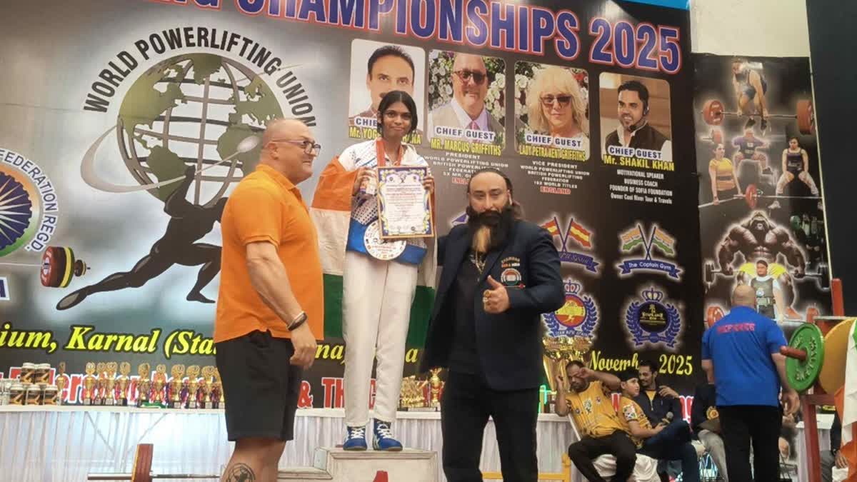 नर्मदापुरम: हरियाणा के करनाल के कल्पना चावला ऑडिटोरियम में 28 से 30 नवंबर तक वर्ल्ड पावरलिफ्टिंग चैंपियनशिप 2025 का आयोजन किया गया. इस प्रतियोगिता में इटारसी की रहने वाली ऋषिका पटेल ने पहला स्थान हासिल कर गोल्ड मेडल जीता. रॉ पावरलिफ्टिंग फेडरेशन रजिस्टर्ड इंडिया, वर्ल्ड पावरलिफ्टिंग यूनियन और ब्रिटिश पावरलिफ्टिंग फेडरेशन ने संयुक्त रूप से इस तीन दिवसीय प्रतियोगिता का आयोजन किया. इसमें भारत, इंग्लैंड और ब्रिटेन सहित कई देशों की टीमों ने हिस्सा लिया.