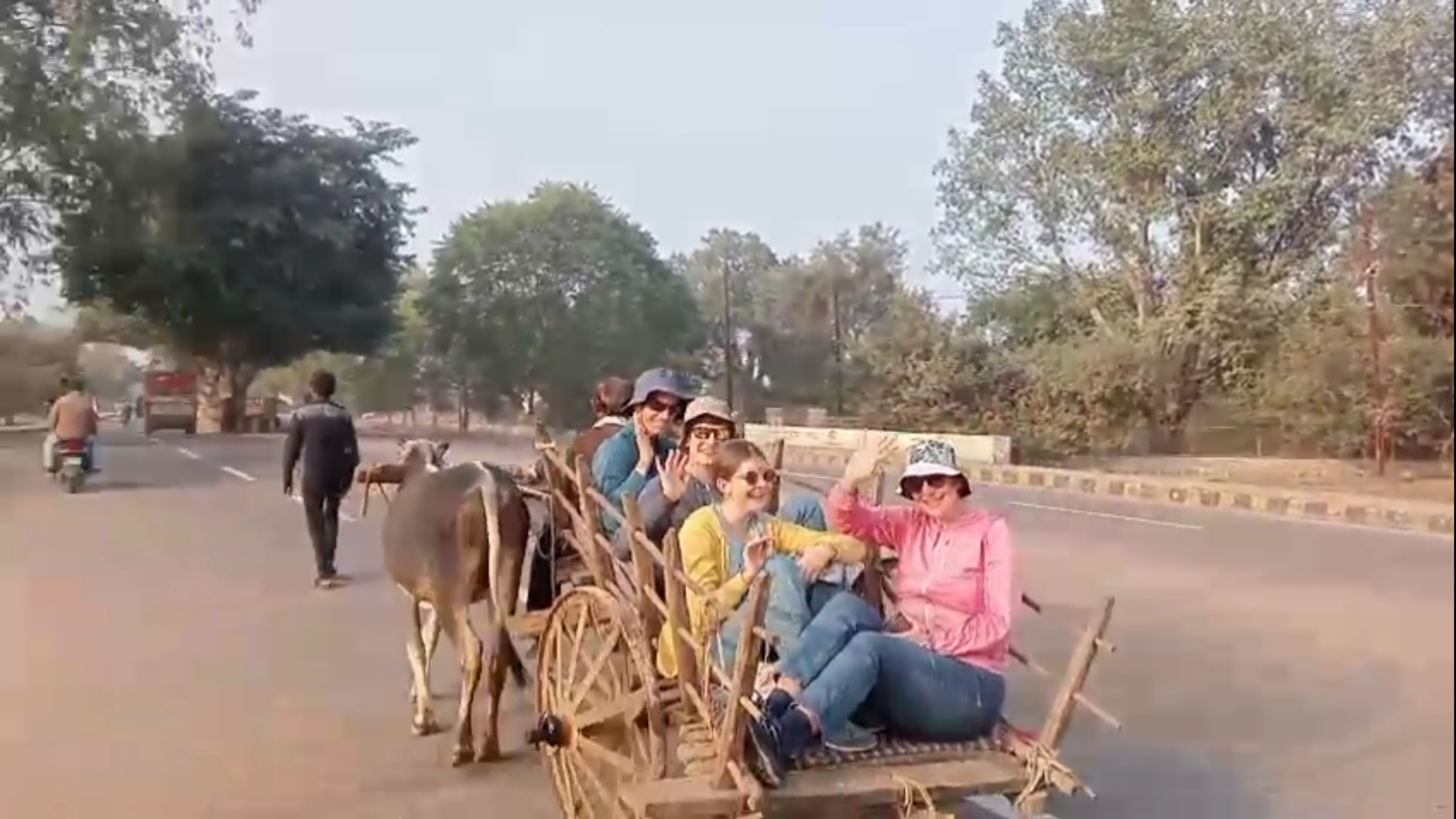 बैलगाड़ी से घूमकर विदोशी हुए गदगद
