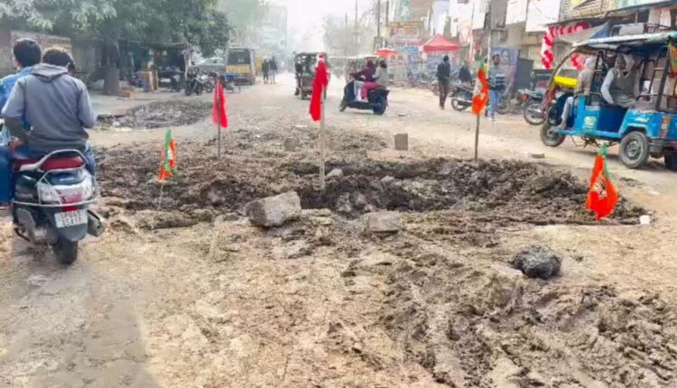 स्थानीय लोगों के अनुसार, रोजाना यहां बाइक सवार फिसल रहे हैं, कारों के पहिए गड्ढे में धंस रहे हैं और कई लोग गिरकर चोटिल हो चुके हैं. सबसे ज्यादा परेशानी स्कूली छात्राओं, महिलाओं और बुजुर्गों को हो रही है. इसके बावजूद नगर निगम की ओर से कोई कार्रवाई नहीं की गई, मानो विभाग को किसी बड़े हादसे का इंतजार हो. नगर निगम की इस लापरवाही से परेशान होकर स्थानीय नागरिकों ने खुद ही अनोखा कदम उठा लिया. हादसों से बचाव के लिए गड्ढे के चारों ओर भाजपा के कमल के झंडे लगा दिए गए, ताकि दूर से ही वाहन चालकों को खतरे का अंदाजा हो सके.