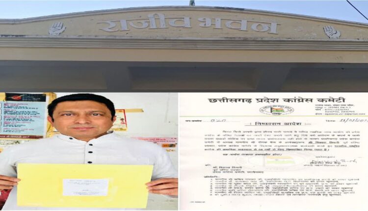 छत्तीसगढ़ प्रदेश कांग्रेस अध्यक्ष दीपक बैज के निर्देश पर महामंत्री (संगठन एवं प्रशासन) मलकीत सिंह गेंदु द्वारा जारी आदेश में कहा गया है कि विकास तिवारी को भारतीय राष्ट्रीय कांग्रेस की प्राथमिक सदस्यता से 6 वर्षों के लिए निष्कासित किया जाता है और यह आदेश तत्काल प्रभाव से लागू होगा.