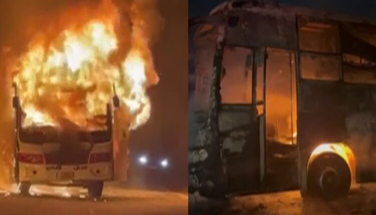 रायसेन: मध्य प्रदेश के रायसेन जिले से एक रोंगटे खड़े कर देने वाली खबर सामने आई है. मंगलवार-बुधवार की दरमियानी रात बस में भीषण आग लग गई. इंदौर से रीवा जा रही जय भवानी ट्रेवल्स की यात्री बस बम्हौरी ढाबे के पास आग का गोला बन गई. देखते ही देखते लपटों ने पूरी बस को अपनी आगोश में ले लिया. वहां से गुजर रहे ट्रक ड्राइवर ने जलती बस के आगे ट्रक लगाकर बस रुकवाई. गनीमत यह रही कि समय रहते सभी यात्रियों को सुरक्षित बाहर निकाल लिया गया, जिससे एक बड़ी त्रासदी टल गई.